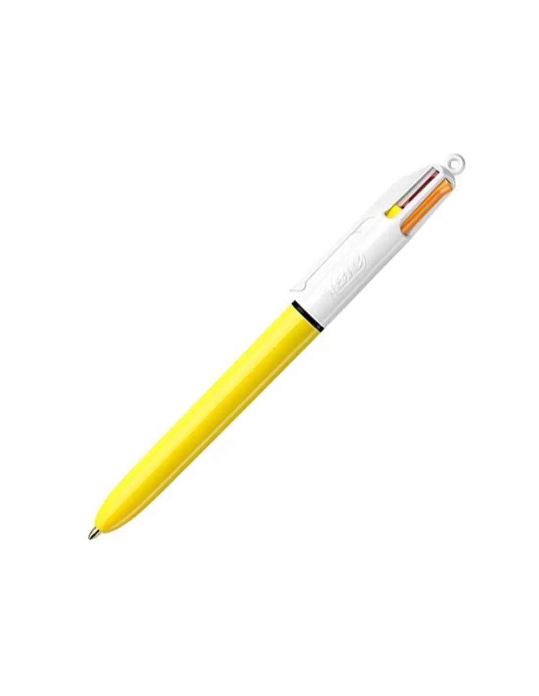 De BIC 4-kleuren balpen in Sun Geel combineert vier inktkleuren in één handige pen met een opvallende gele behuizing. Hiermee wissel je eenvoudig tussen blauw, zwart, rood en groen voor veelzijdig en kleurrijk schrijven.