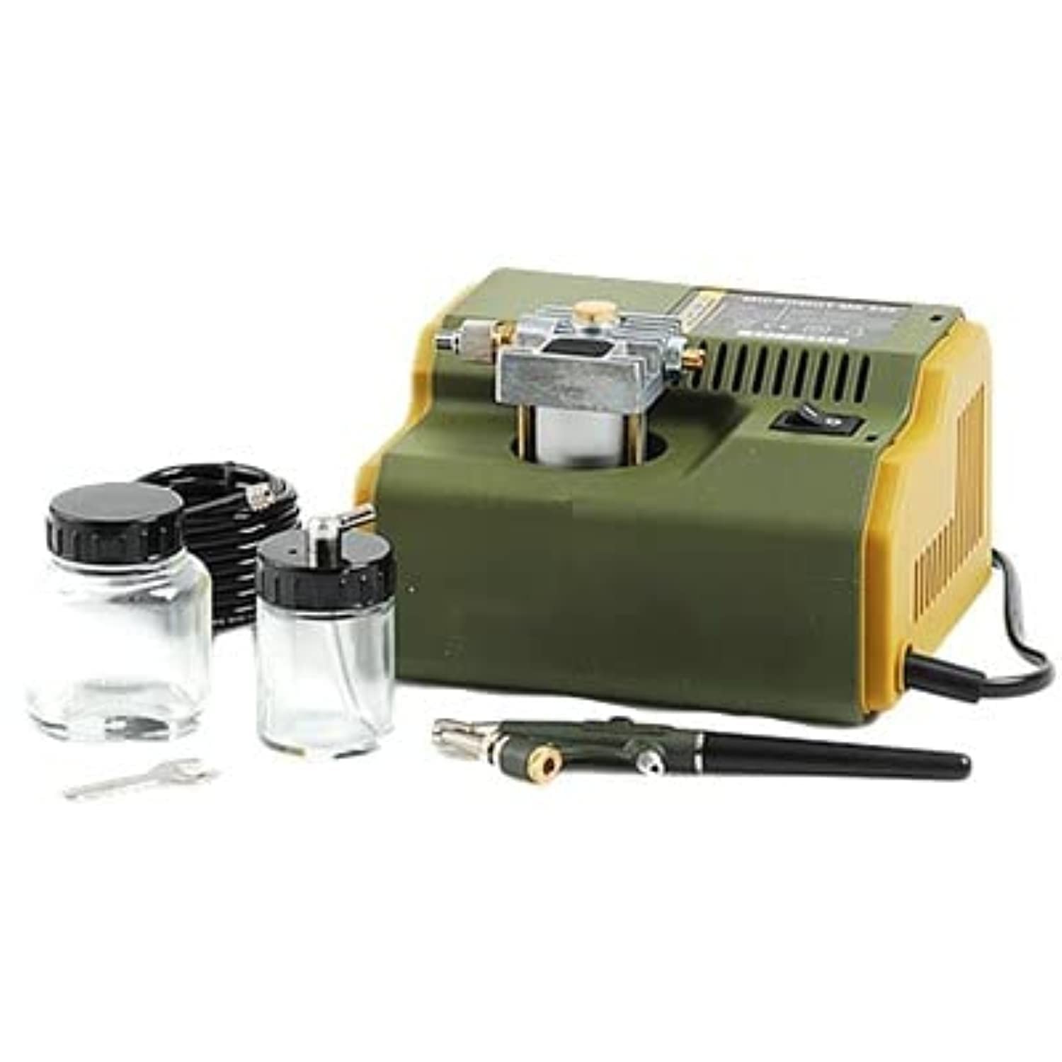 De praktische combinatie voor de modelbouwer, voor het maken van maskers, voor technische illustraties. Loopt geruisloos, met 200cm luchtslang voor aansluiting op de airbrush AB 100. Deze heeft Single-Action-Function en een verstelbare sproeier. Desondanks ook geschikt voor beginners. Wordt geleverd met twee verfreservoirs.