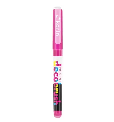 De Karin Deco Brushmarker Pigment is een met top kwaliteit inkt gevulde marker met een fantastische brushpunt. De inkt dekt op allerlei ondergronden, licht of donker, zoals papier, metaal, glas, textiel en meer. Het bijzondere is dat de inkt watervast opdroogt en hierdoor uitstekend werkt voor laag over laag.