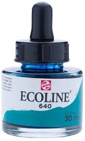 Ecoline is een vloeibare aquarelverf. Ze bestaat in brushpennen en in potjes. Een aquarelverf is niet watervast: je kunt deze dus doen lopen of vervagen met water. Ecoline is een transparante verf, hi...