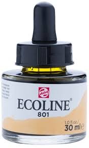 Ecoline is een vloeibare aquarelverf. Ze bestaat in brushpennen en in potjes. Een aquarelverf is niet watervast: je kunt deze dus doen lopen of vervagen met water. Ecoline is een transparante verf, hi...