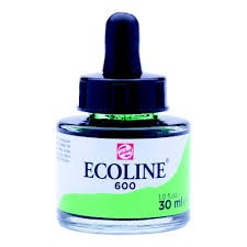 Ecoline is een vloeibare aquarelverf. Ze bestaat in brushpennen en in potjes. Een aquarelverf is niet watervast: je kunt deze dus doen lopen of vervagen met water. Ecoline is een transparante verf, hi... Lees meer