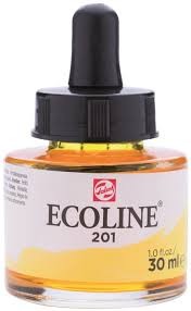 Ecoline is een vloeibare aquarelverf. Ze bestaat in brushpennen en in potjes. Een aquarelverf is niet watervast: je kunt deze dus doen lopen of vervagen met water. Ecoline is een transparante verf, hi... Lees meer