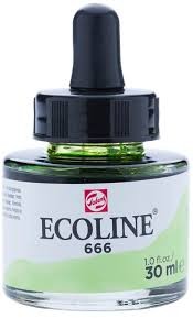 Ecoline is een vloeibare aquarelverf. Ze bestaat in brushpennen en in potjes. Een aquarelverf is niet watervast: je kunt deze dus doen lopen of vervagen met water. Ecoline is een transparante verf, hi... Lees meer