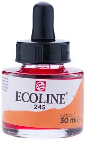 Ecoline is een vloeibare aquarelverf. Ze bestaat in brushpennen en in potjes. Een aquarelverf is niet watervast: je kunt deze dus doen lopen of vervagen met water. Ecoline is een transparante verf, hi... Lees meer