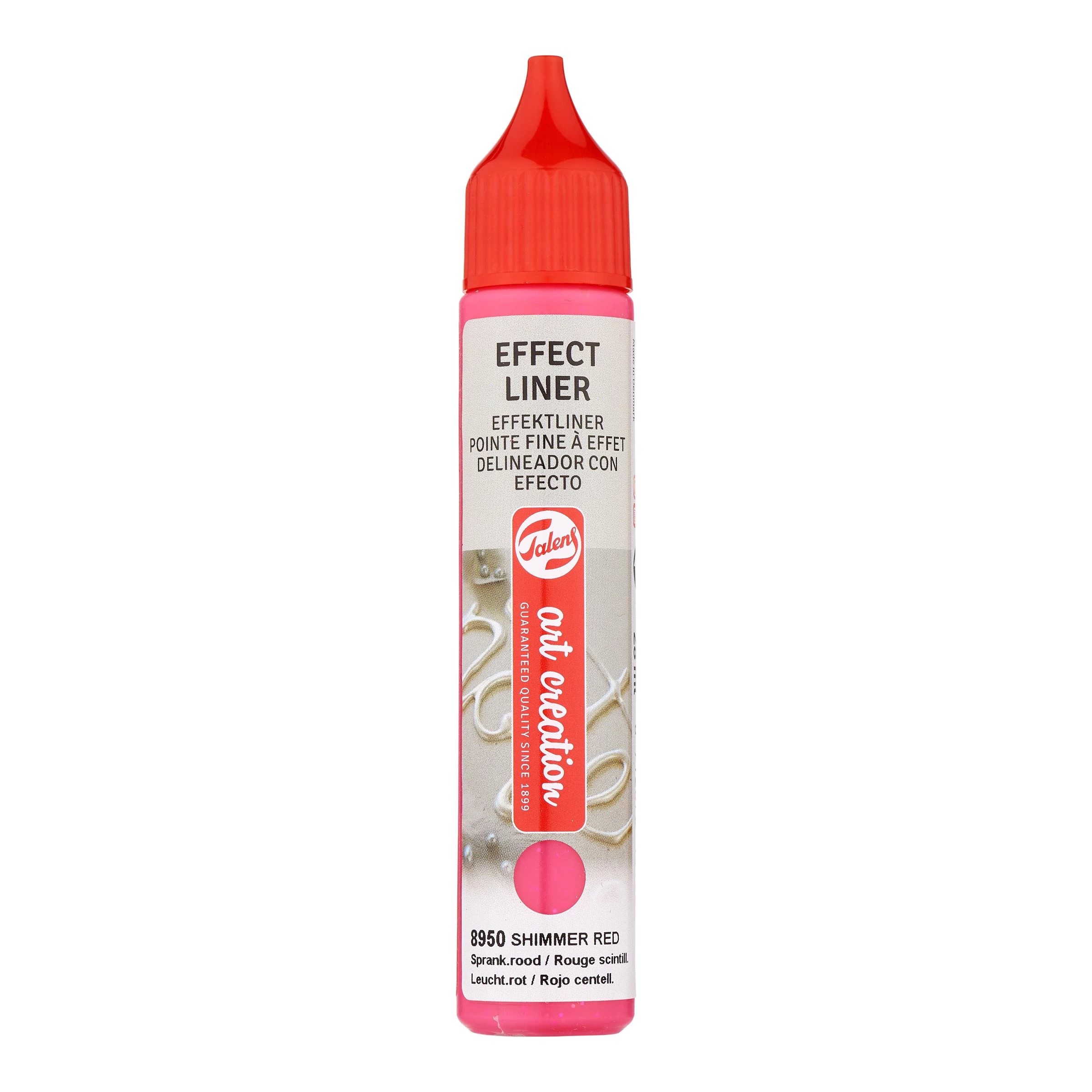Een reliëfliner voor het creëren van driedimensionale lijnen en stippen op vrijwel elk lichtabsorberend oppervlak, waaronder de meeste textielsoorten. De Effect Liners zijn zeer geschikt voor het aanbrengen van fraaie gladde 'parels'. Houd voor een optimaal 3D-effect de punt net boven het oppervlak en druk de verf er in een vloeiende beweging uit. Droog tijd: 24 uur. Alleen voor gebruik binnenshuis. Bij het aanbrengen op textiel: was de stof zonder wasverzachter voordat je de verf aanbrengt. Wasbaar op 40 °C. Beschikbaar in 49 verschillende tinten en diverse effecten, zoals parelmoer, glans, glitter en neon.