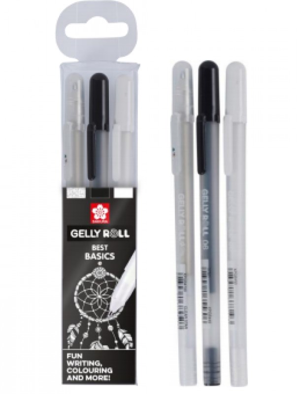 Een unieke set met de meest populaire Metallic kleuren Basic Zwart en Basic Wit samen met Stardust Clear Sparkle. Superleuk voor schrijven, tekenen, versieren, scrapbooking, wenskaarten en andere hobby-toepassingen. Sakura heeft een magisch, glanzend effect op wit, zwart, gekleurd en glanzend papier. De unieke gelinkttechnologie zorgt voor soepele schrijf- en kleurresultaten en is makkelijk in het gebruik. (Niet nodig om druk uit te oefenen.) Gelly Roll Basic Wit geeft de ultieme dekking op donker papier en foto's.