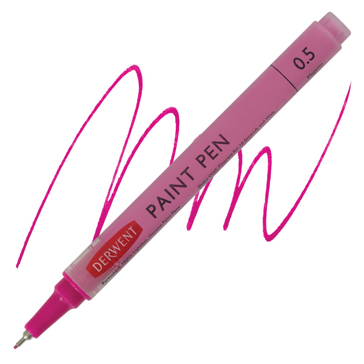 Derwent Paint Pens zijn een creatief teken- en schildergereedschap dat gepigmenteerde acrylverf bevat die zeer lichtbestendig en permanent is zodra deze droog is. De hoogwaardige, breukbestendige 0,5 mm Japanse pennen zijn zeer duurzaam en zorgen voor een verscheidenheid aan unieke verfeffecten, van fijne lijnen tot grote lagen en opwindende, fantasierijke verfspatten.