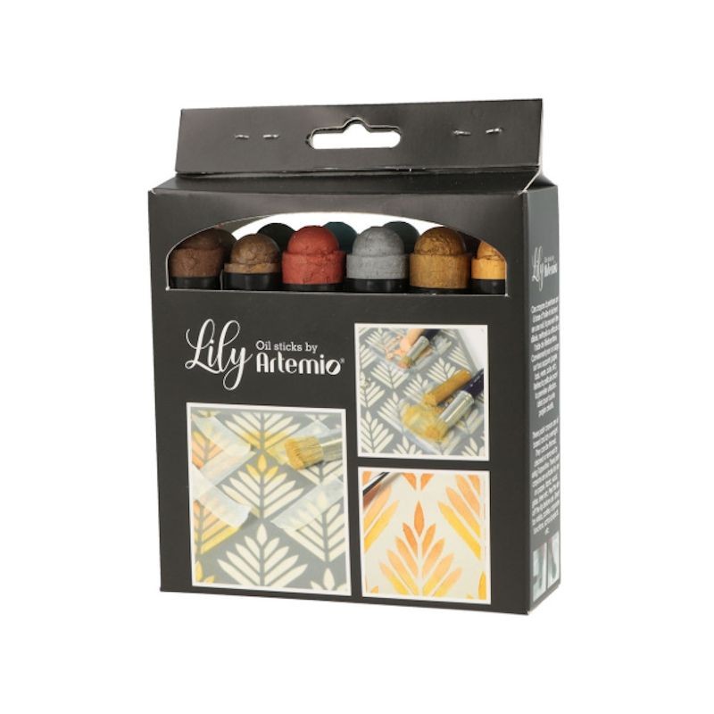 Olie krijten, kan je ook aanbrengen met een verfborstel. Ideaal om te sjabloneren.