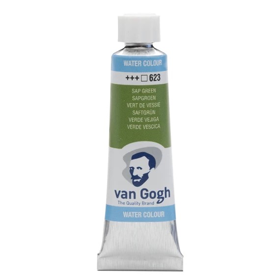 Van Gogh aquarelverf wordt geclassificeerd als een assortiment voor studenten en kunstenaars. De kleuren zijn briljant, transparant en intens en de verf heeft een hoge kleurkracht. Dankzij de zuiverheid en uniforme viscositeit is al deze aquarelverf gemakkelijk om mee te werken en te mixen. Met gepaste trots en strikte kwaliteitscontroles geproduceerd in Nederland, zodat je met iedere aankoop gegarandeerd dezelfde ervaring hebt. Deze tube van 10 ml met Sapgroen 623 is samengesteld met PY129/PG7-pigment(en), is transparant en heeft een lichtechtheidsgraad van +++ (minimaal 100 jaar lichtecht onder museumomstandigheden).
