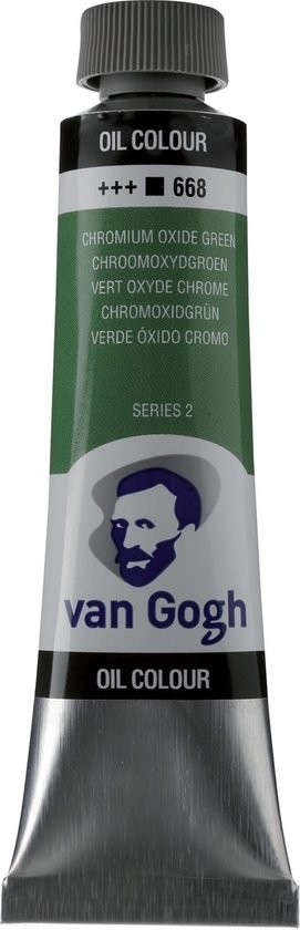 Als je op zoek bent naar betere olieverf, zit je met deze Van Gogh-collectie van Nederlandse bodem goed. Een boterige olie met uitstekende kleurkracht, een hoog pigmentaandeel voor intense kleuren en een gelijkmatige glans en dikte. Gemakkelijk te mengen en te verwerken. Deze olieverf is ideaal voor beginners, gevorderde studenten en actieve kunstenaars. Deze tube van 40 ml met dekkend Chroomoxydgroen 668 is samengesteld met PG17-pigment(en) en heeft een lichtechtheidsgraad van +++ (100+ jaar onder museumomstandigheden).