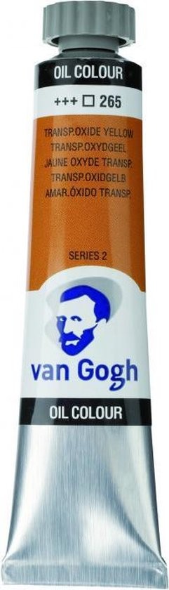 Als je op zoek bent naar betere olieverf, zit je met deze Van Gogh-collectie van Nederlandse bodem goed. Een boterige olie met uitstekende kleurkracht, een hoog pigmentaandeel voor intense kleuren en een gelijkmatige glans en dikte. Gemakkelijk te mengen en te verwerken. Deze olieverf is ideaal voor beginners, gevorderde studenten en actieve kunstenaars. Deze tube van 40 ml met transparant Transparantoxydgeel 265 is samengesteld met PY42-pigment(en) en heeft een lichtechtheidsgraad van +++ (100+ jaar onder museumomstandigheden).