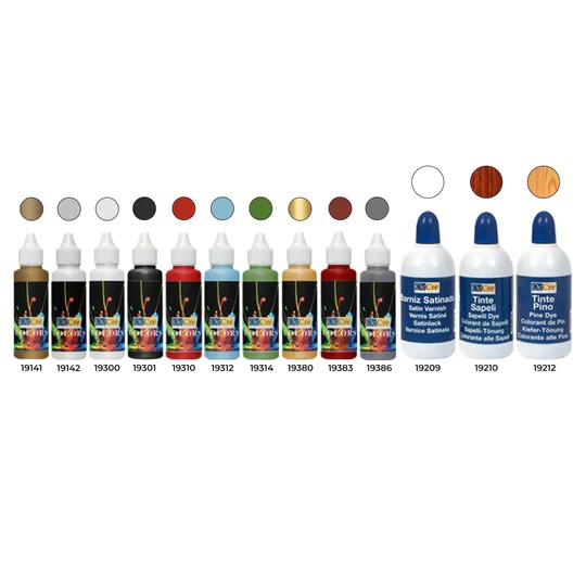 Het pakket bevat de kleuren, kleurstoffen en vernis die nodig zijn voor de perfecte afwerking van de Ulises RC
