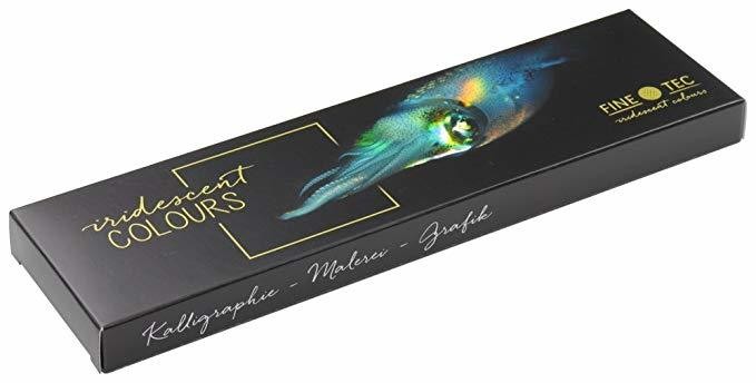 De FINETEC aquarelcollectie bestaat uit verschillende parelmoer-, iriserende en Flip-Flop kleuren, gemaakt met ethisch gewonnen natuurlijke mica of synthetische substraten die zorgen voor een prachtige glans. Deze dekkende kleuren tonen hun intense schittering op alle absorberende oppervlakken.