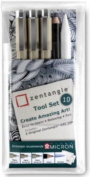 De Zentangle Tool Set 10-delig is een uitgebreide verzameling essentiële hulpmiddelen voor het beoefenen van de Zentangle methode. Deze set bevat hoogwaardige pennen, potloden, een gum en diverse papi...