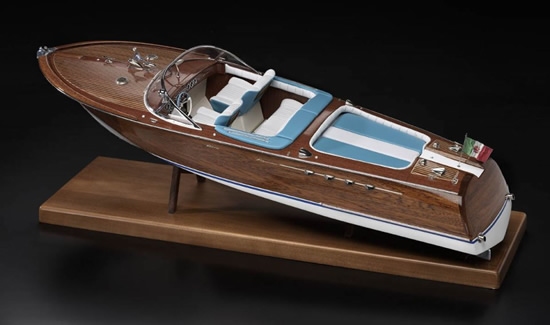 1/10de schaal van de italiaans motorboot. De houten body is laser gecut, heeft dubbele beplanking, een zetel set en een metalen windscherm. De totale lengte van de boot meet 86cm.