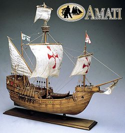 De Santa Maria van Christofel Columbus uit 1492. Deze boot is op schhal 1/65 en meet 54cm lang. De zeilen zijn uitgerust in stof.