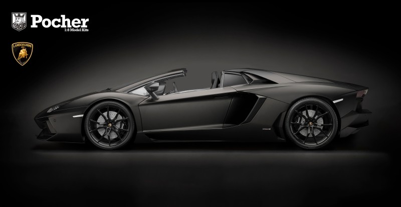 Lamborghini Aventador LP 700-4 Roadster, twaalf cilinders, 700 pk, van 0 naar 100 in 2,9 seconden en een topsnelheid van 349 km/u. Van oorsprong een echte straaljager voor op straat. POCHER presenteert deze droomauto nu op schaal 1:8 als hoogwaardig bouwpakket met meer dan 600 onderdelen. In overeenstemming met de POCHER-traditie is de carrosserie van het model, dat ongeveer 7 kg weegt, volledig van metaal gemaakt en al geverfd. Diverse delen zijn beweegbaar, deuren en kappen kunnen geopend worden. Er wordt zelfs rekening gehouden met het stuur rechts of links. De precies passende set bevat veel geschroefde onderdelen en is met een beetje handigheid eenvoudig in elkaar te zetten.