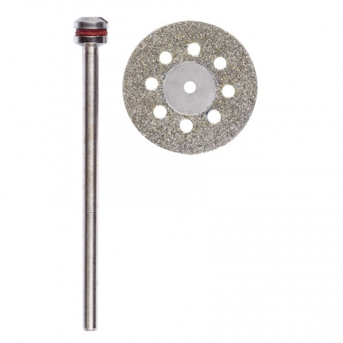 Diamantdoorslijpschijven met koelgaten. Voor snijden, schuren en ontbramen. Hetzelfde toepassingsgebied als links hiernaast beschreven. Minder opwarming dankzij de koelgaten. Geen sporen van verwarming! As-Ø 2,35. Alle afmetingen zijn in mm.