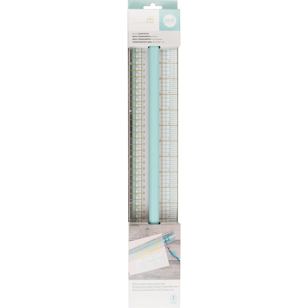 De liniaal heeft een gemakkelijke grip en een antislip onderkant. Het handvat werkt tevens als vingerbescherming. Het heeft een duurzame metalen rand om te snijden. De metingen zijn in inches en centimeters met een centrale uitlijningsgeleider. Het transparante plastic maakt het gemakkelijk om op een snijmat te plaatsen. De verstelbare plaatsingsgeleiders zijn perfect voor het snijden in veelvouden.