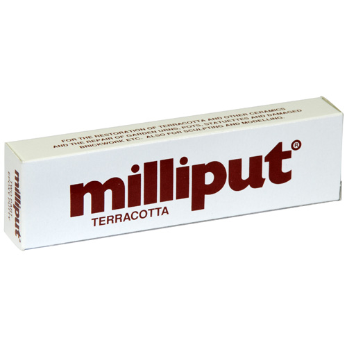 Milliput Terracotta is een van de bekendste epoxy putty producten om te modelleren, maar dan in een praktische terracotta kleur. Het materiaal werkt zoals het bekende GreenStuff. Milliput bestaat ook uit twee componenten (2x 56,7 gr.) en door deze goed te vermengen (5 min. goed kneden) zal het materiaal langzaam gaan uitharden, waarna het na 3 uur volledig uitgehard is. Door de putty koel, droog en luchtdicht te bewaren blijft het ongeveer 2 jaar bruikbaar.