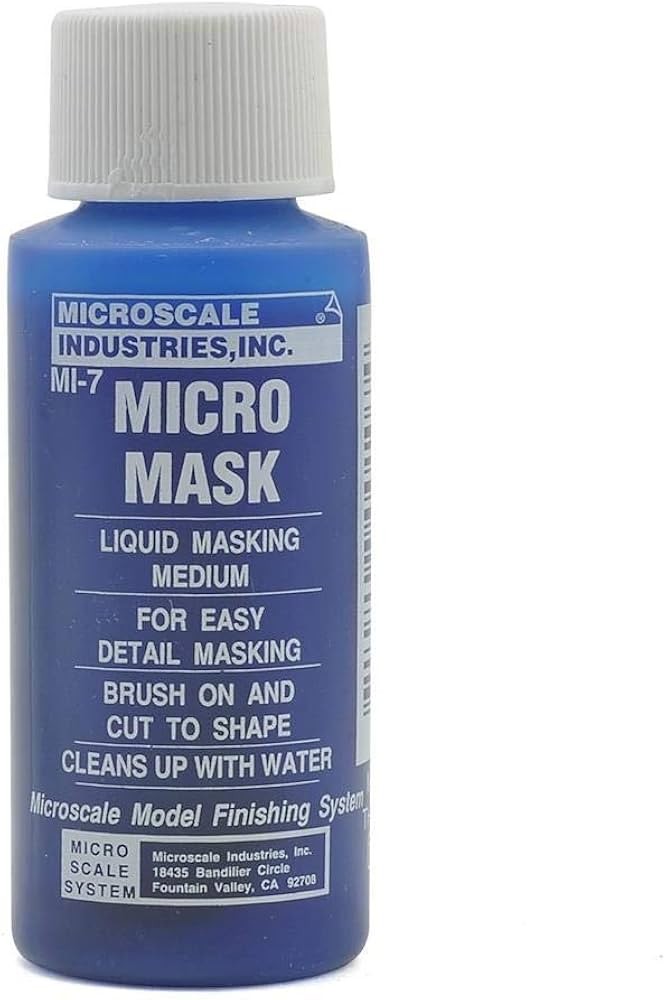 Micro Mask is maskeer tape in een flesje. Breng het aan met een borstel, laat het drogen en snij het in elke vorm die u wenst. Trek het gedeelte wat u wenst te verven weg, en breng de verf aan zoals u gewend bent. Gebruikt echter geen verf op waterbasis, aangezien Micro Mask waterverdunbaar is. Met dit middel kunt u het fijnste detail aanbrengen wat u snijden kunt. Ook laat Micro Mask geen verf onder zich komen, dus uw ontwerpen zullen er haarscherp uit komen te zien.