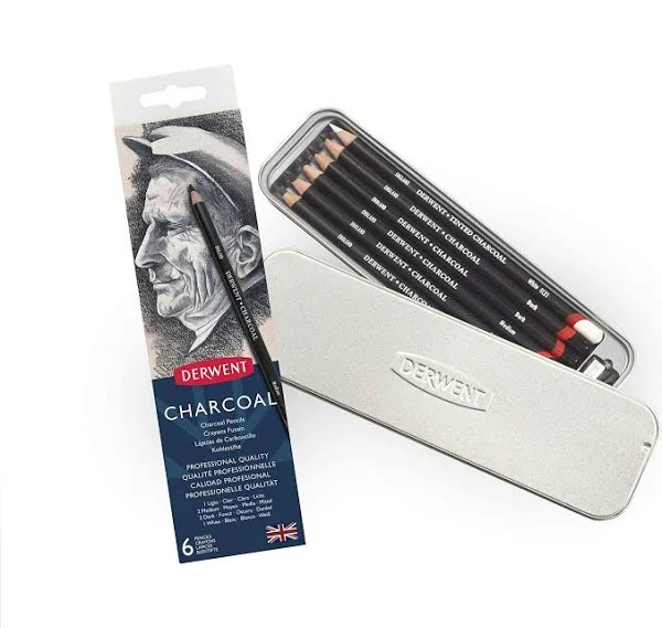 Vaak gebruikt voor levensstudies wordt houtskool als zeer traditioneel beschouwd. Verpak het in hout en opeens heb je iets veel moderners - Derwent Charcoal Pencils! Ze geven je geweldige controle over je tekeningen, maar behouden al die traditionele houtskooleffecten waar je van houdt, met minder rommel! Bevat 1 x Light, 2 x Medium, 2 x Dark, 1 x Tinted Charcoal White en een puntenslijper.