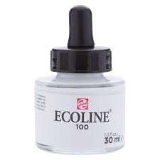 Ecoline is een vloeibare aquarelverf. Ze bestaat in brushpennen en in potjes. Een aquarelverf is niet watervast: je kunt deze dus doen lopen of vervagen met water. Ecoline is een transparante verf, hi... Lees meer