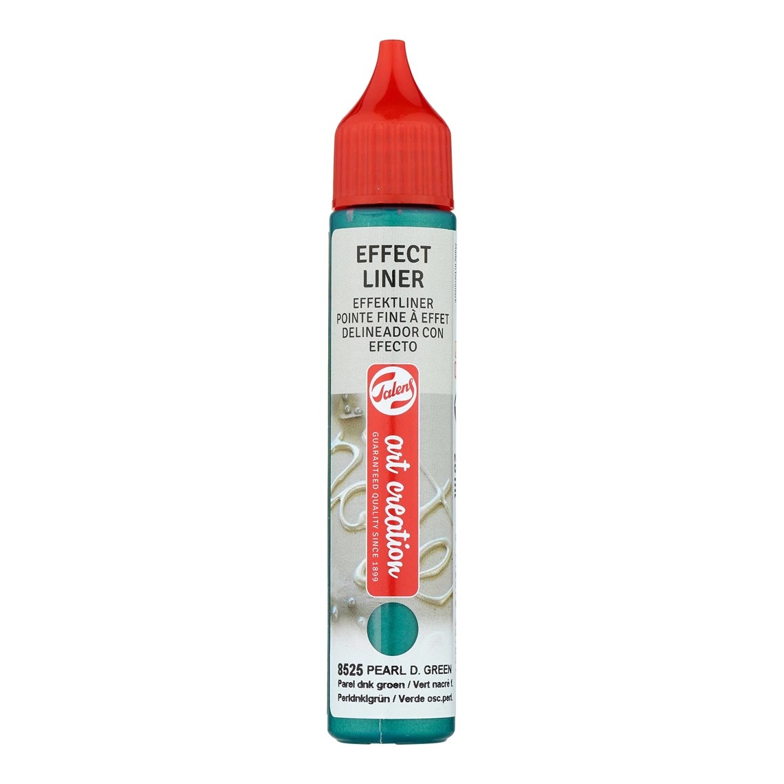 Een reliëfliner voor het creëren van driedimensionale lijnen en stippen op vrijwel elk lichtabsorberend oppervlak, waaronder de meeste textielsoorten. De Effect Liners zijn zeer geschikt voor het aanbrengen van fraaie gladde 'parels'. Houd voor een optimaal 3D-effect de punt net boven het oppervlak en druk de verf er in een vloeiende beweging uit. Droog tijd: 24 uur. Alleen voor gebruik binnenshuis. Bij het aanbrengen op textiel: was de stof zonder wasverzachter voordat je de verf aanbrengt. Wasbaar op 40 °C. Beschikbaar in 49 verschillende tinten en diverse effecten, zoals parelmoer, glans, glitter en neon.