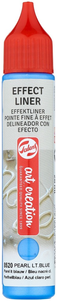 Een reliëfliner voor het creëren van driedimensionale lijnen en stippen op vrijwel elk lichtabsorberend oppervlak, waaronder de meeste textielsoorten. De Effect Liners zijn zeer geschikt voor het aanbrengen van fraaie gladde 'parels'. Houd voor een optimaal 3D-effect de punt net boven het oppervlak en druk de verf er in een vloeiende beweging uit. Droog tijd: 24 uur. Alleen voor gebruik binnenshuis. Bij het aanbrengen op textiel: was de stof zonder wasverzachter voordat je de verf aanbrengt. Wasbaar op 40 °C. Beschikbaar in 49 verschillende tinten en diverse effecten, zoals parelmoer, glans, glitter en neon.