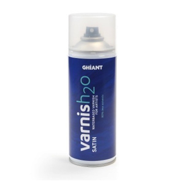 GHIANT H2O Vernis zijdeglans Spuitbus 400ML is een milieuvriendelijke versie van de standaard vernis. Deze universele zuurvrije vernis op waterbasis biedt maximale bescherming aan zowel olie- als acrylverf. Door de langere droogtijd is hij ideaal voor het vernissen van grote oppervlakken.