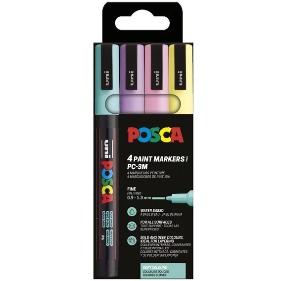 Deze set bevat 4 markers in subtiele, zachte kleuren, perfect voor het creëren van verfijnde ontwerpen, Ze zijn permanent op hout, textiel, karton, metaal, keramiek en plastic, uitwisbaar van glas, en vereisen fixatie op geglazuurd aardewerk en porselein. De markers zijn op waterbasis, dekkend, ondoorzichtig en mat.