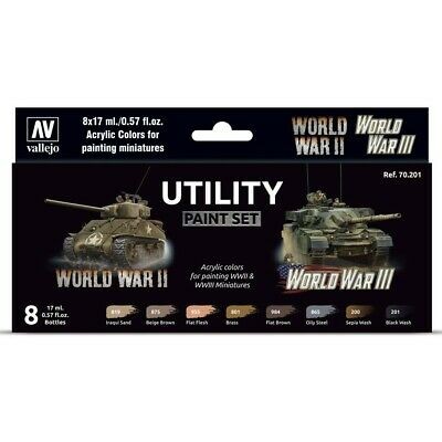 De Utility Paint Set gecombineerd met de juiste landspecifieke verfset, bevat alle kleuren die nodig zijn voor het schilderen van WWII en WWIII miniaturen. Als alternatief biedt deze set aanvullende kleuren voor wapens, vlees, hout en washes voor schaduweffecten over figuren en voertuigen.