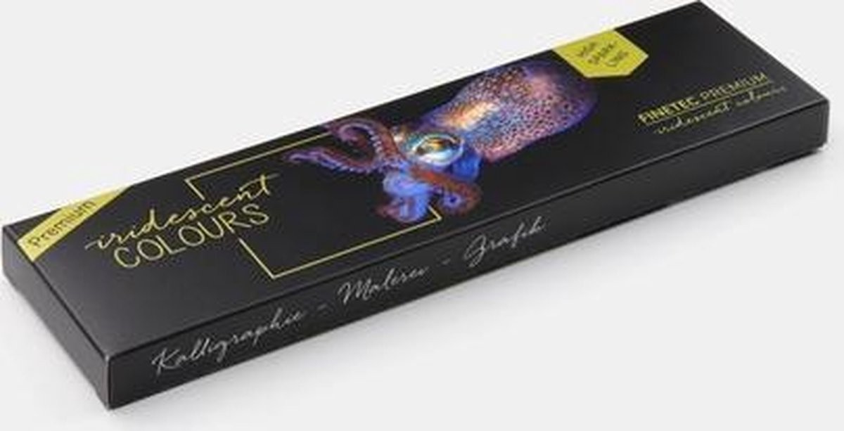 De FINETEC aquarelcollectie bestaat uit verschillende parelmoer-, iriserende en Flip-Flop kleuren, gemaakt met ethisch gewonnen natuurlijke mica of synthetische substraten die zorgen voor een prachtige glans. Deze dekkende kleuren tonen hun intense schittering op alle absorberende oppervlakken.