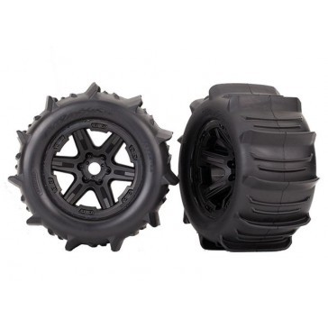 Tires & wheels, assembled, glued (black 3.8" wheels, paddle tires,