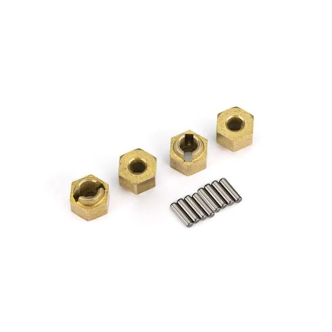 Wheel hubs, 7mm hex (brass) (4)/ axle pins (8)