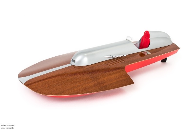 De rondingen op de cockpit zijn in laagopbouw vervaardigd en in vorm geslepen. De motorkapbekleding is gemaakt van A-Tex. In de cockpit passen figuren op schaal 1:6. De zitting is bekleed met een kussen en bekleed met het meegeleverde kunstleer. Een passende scheepsas met schroefaskoker is ook in de set inbegrepen.