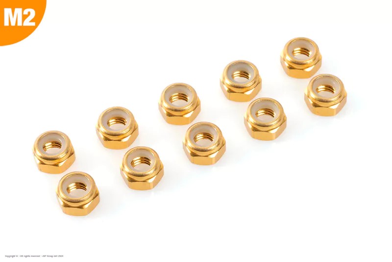 Zelfborgende zeskantmoer M2 "Gold", Aluminium (10st)