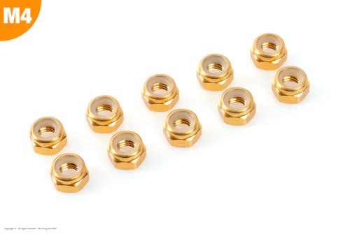 Zelfborgende zeskantmoer M4 "Gold", Aluminium (10st)