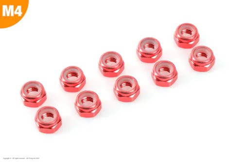 Zelfborgende zeskantmoer M4 "Red", Aluminium (10st)