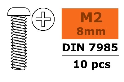 Bolcilinderschroef met philips kruissleuf, M2X8, Gegalvaniseerd staal (10st)