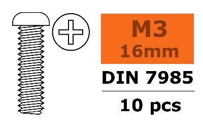 Bolcilinderschroef met philips kruissleuf, M3X16, Gegalvaniseerd staal (10st)