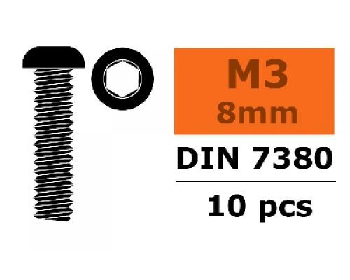 Laagbolkopschroef - Hex - M3X8- Staal - 10 st