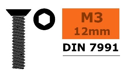 Verzonkenkopschroef - Hex - M3X12 - Staal - 10 st