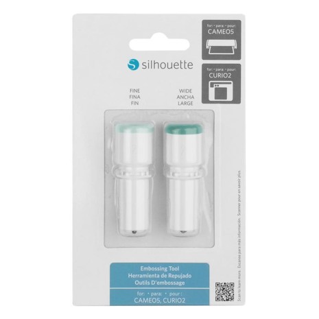 De embossingtoolset is ontworpen om een embossingkanaal te creëren op geselecteerde materiaaloppervlakken voor een unieke reliëflook. Dit hulpmiddel is bedoeld voor gebruik op materiaaloppervlakken waar reliëfafdrukken kunnen worden gemaakt, zoals embossingfolie , karton en score- en reliëfpapier . Dit gereedschap is alleen bedoeld voor gebruik met geselecteerde Silhouette-snijmachines. Vereist een embossingmat voor een goede werking.
