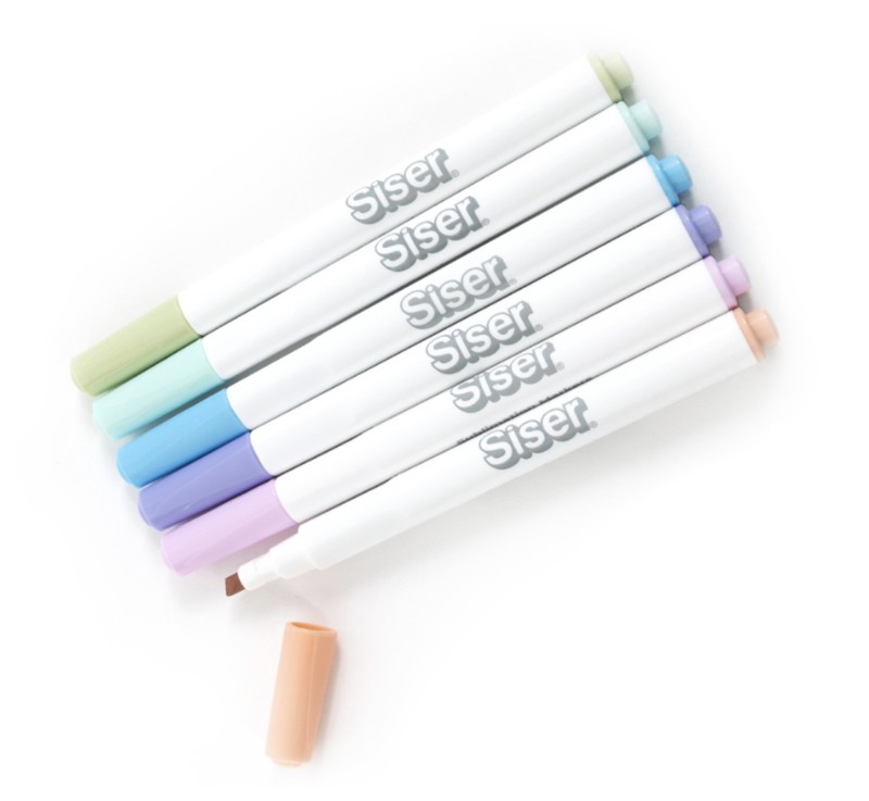 Siser Sublimation Markers zien eruit en voelen aan als je typische marker met een beitelpunt, maar de inkt aan de binnenkant is sublimatie-inkt! Wanneer de sublimatie-inkt warmte ontmoet, verandert het in een gas en de toegepaste druk dwingt het gas in het blanco item waar het weer verandert in een vaste, permanente decoratie.