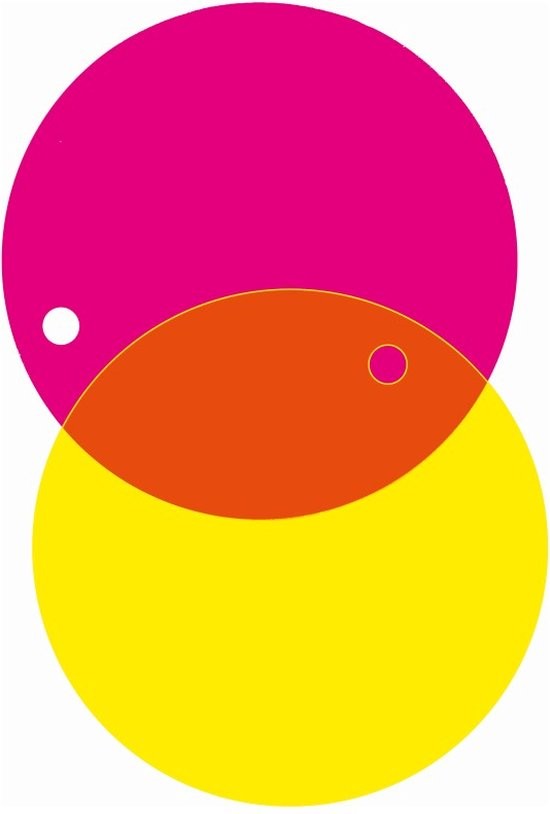 De vormen zijn geel en roze. Ze meten 5 cm in diameter en zijn 2 mm dik.