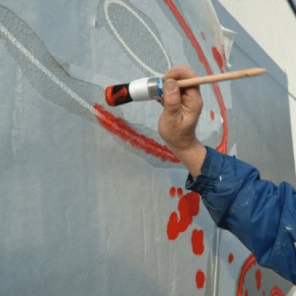 De premium sjablonenfolie, ook wel Maskfilm genoemd, laat zich na het lakken (oplosmiddel lak is geen probleem) weer zonder problemen verwijderen van spandoeken en vele andere ondergronden.