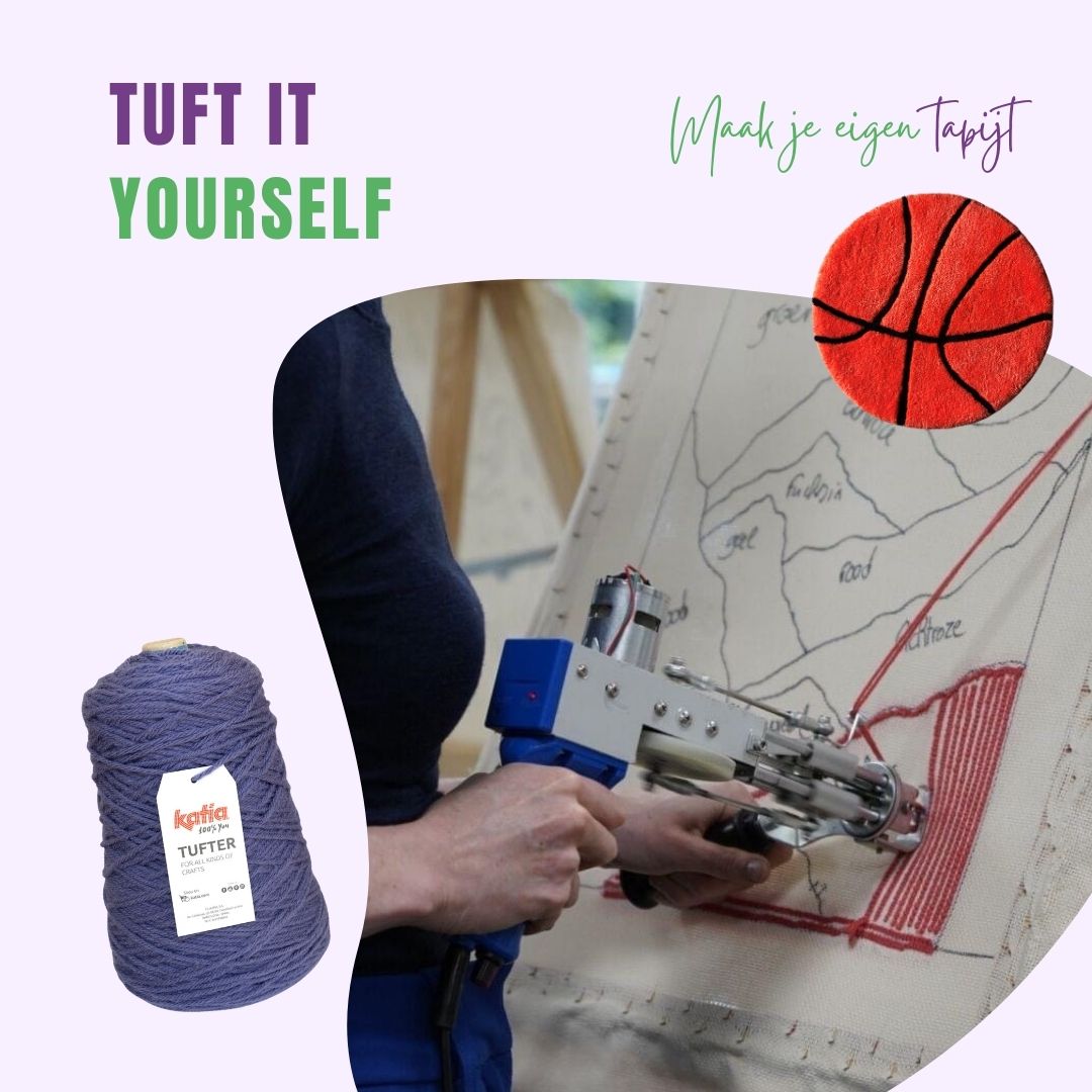 Tufting is een super leuke techniek om je eigen tapijtjes of decoratie met wol te maken. Je werkt hiervoor op een strak gespannen doek, met een tufting pistool. Hiermee 'schiet' je als het ware je wol door het doek, waardoor je een heerlijk zacht tapijt krijgt.